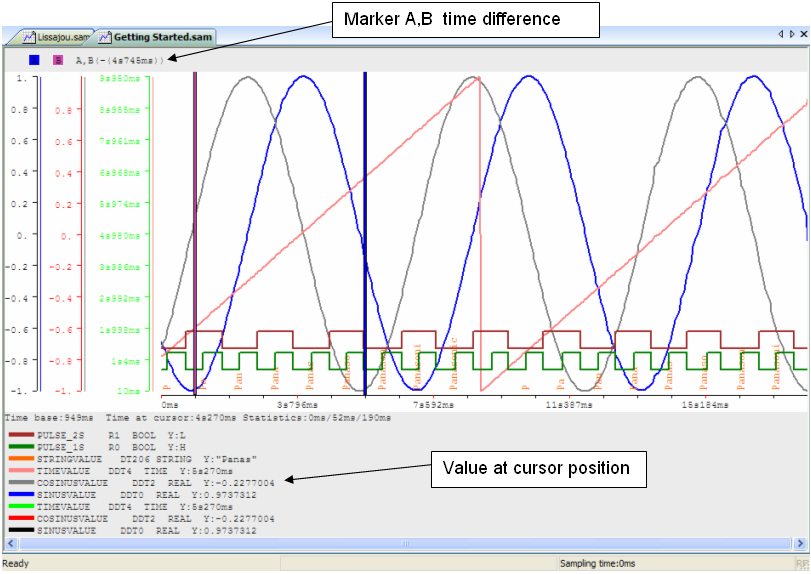 Evaluate and analyze recorded samples in a graphical, textual or XY-mode views during or after recording