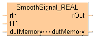 Dieser Befehl verwendet eine Verzögerungszeit erster Ordnung tT1, um den REAL-Eingangswert an iIN zu glätten.