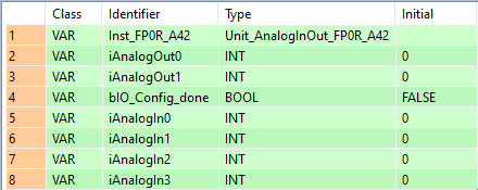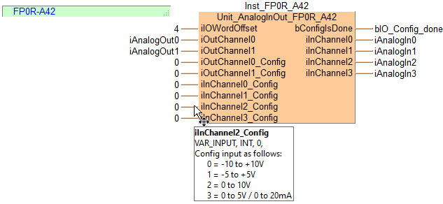 Unit_AnalogInOut_FP0R_A42Function block to write to and read from an FP0R-A42 unit.