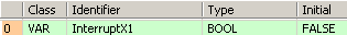 END_VARWhen InterruptX1 turns on, the input condition of interrupt input X1 is changed to "Rising Edge".