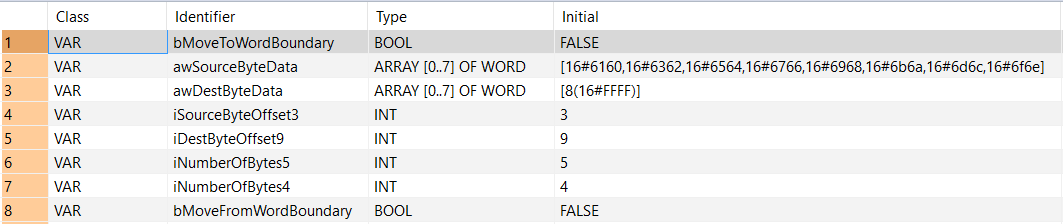 awSourceByteData: ARRAY [0..7] OF WORD:=[16#6160,16#6362,16#6564,16#6766,16#6968,16#6b6a,16#6d6c,16#6f6e];