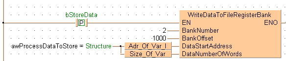 END_VARSi bStoreData cambia de FALSE a TRUE la variable DUT awProcessDataToStore (una DUT que contiene 11 elementos) se rellena con los datos del Banco 2 del Fichero de Datos, BankOffset 1000.