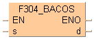 La funzione calcola l'arcocoseno di un valore BCD inserito all'ingresso s sotto forma di ARRAY con tre elementi. Il risultato viene restituito come dato angolare BCD nell'intervallo da 0° a 360° (da 16#0 a 16#360) all'uscita d.