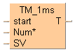 このファンクションは、下位バージョン互換のためにコンパイル可能となっていますが、「命令」ダイアログボックスでは選択することができません。置き換えることができます:TM_1ms_FB 1msオンディレイタイマ