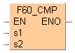 実行条件ENがONのとき、s1で指定された16ビットデータと、s2で指定された16ビットデータを比較します。比較演算結果は、 システム変数sys_bIsGreaterThan (> フラグ)、sys_bIsEqual (= フラグ)、sys_bIsLessThan (< フラグ)、sys_bIsCarry (キャリーフラグ)に格納されます。