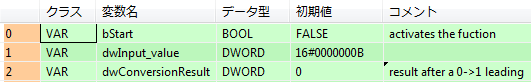 END_VAR変数bStartがTRUEにセットされると、このファンクションが実行されます。