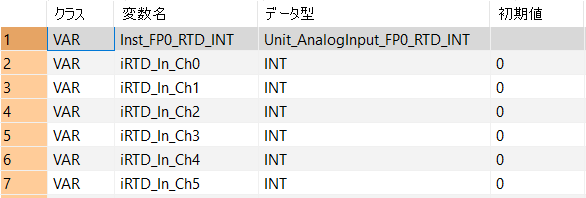 Unit_AnalogInput_FP0_RTD_INTFP0-RTD6ユニットから読み出しを行うためのファンクションブロック(変換後のデジタル値はINTデータ型)。