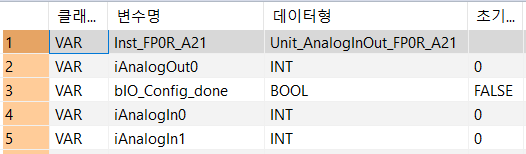 Unit_AnalogInOut_FP0R_A21FP0R-A21 유닛에서 쓰고 읽는 펑션블록입니다.