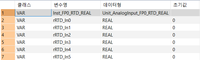 Unit_AnalogInput_FP0_RTD_REALFP0-RTD6 유닛에서 읽는 펑션블록(변환된 디지털 값은 REAL 데이터 형식임)