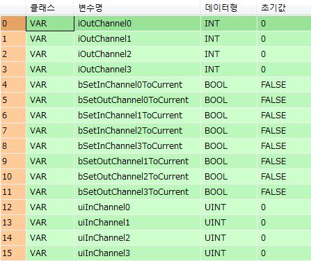 이 펑션 프로그램 시 사용한 모든 입력과 출력 변수는 POU 헤더에서 선언되었습니다.