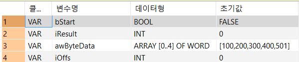awByteData: ARRAY [0..4] OF WORD:=[100,200,300,400,501];