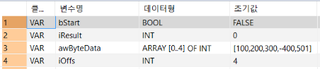 awByteData: ARRAY [0..4] OF INT:=[100,200,300,-400,501];