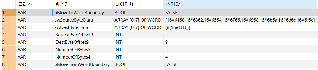 awSourceByteData: ARRAY [0..7] OF WORD:=[16#6160,16#6362,16#6564,16#6766,16#6968,16#6b6a,16#6d6c,16#6f6e];
