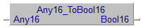 此函数会将数据从输入Any16中的16位变量复制到数据类型BOOL的含有16个元素的数组或DUT,以输出Bool16。