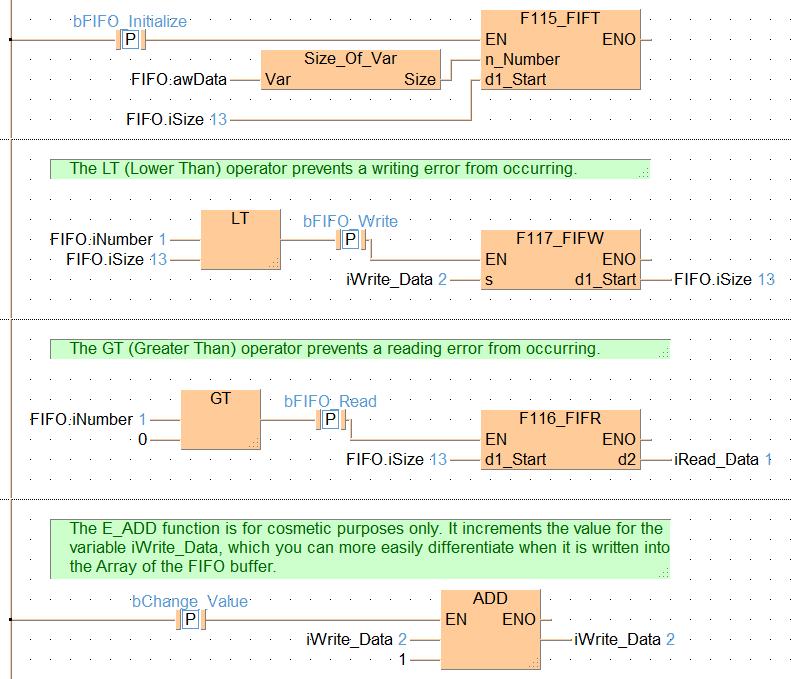 B(B_COMMENT,,The E_ADD function is for cosmetic purposes only. It increments the value for the variable iWrite_Data~ which you can more easily differentiate when it is written into the Array of the FIFO buffer.,3,1,34,4,);