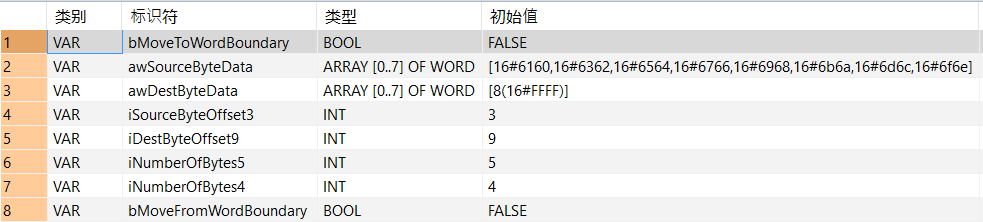 awDestByteData: ARRAY [0..7] OF WORD:=[8(16#FFFF)];
